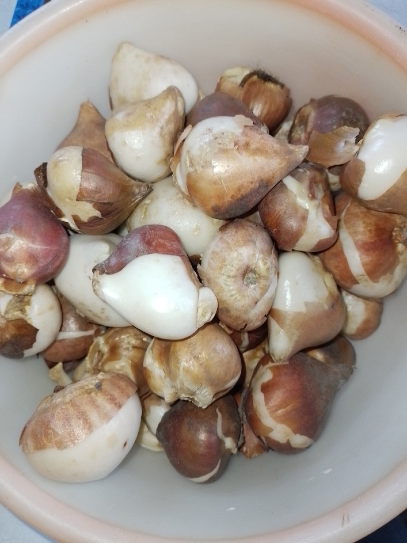 В этом году приобрела довольно много тюльпанов. Аж 2,5 кг. Из них 1,5 кг сортовых тюльпанов и 1 кг луковицы после выгонки. Сажала тюльпаны на глубину примерно 20 см. Весной будет много красоты!
