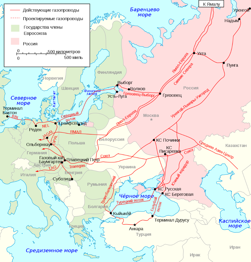 После того как были выведены из строя две ветки «Северного потока-1» и одна ветка «Северного потока-2», сложилось впечатление, что из Российской Федерации в Европу не идет больше ни одна газовая труба. Но на самом деле это не так. Кроме «Северных потоков», есть еще трубы, и в этом материале я вкратце расскажу про них. Сколько газовых труб идет из России в Европу Итак, из четырех веток «Северного потока» целой и невредимой осталась только одна и по идее она может быть введена в эксплуатацию в очень сжатые сроки. Еще в Европу идут следующие «потоки: Как видите, труб еще довольно много. Теперь давайте расскажу вам про каждый из них несколько слов. Союз И начну я со старейшего маршрута - «Союз», который был реализован еще в советское время. Основным потребителем данного газа является Польша и проектная мощность газопровода равна 26 млрд кубометров газа в год. Уренгой – Ужгород Еще один газопровод был построен еще в СССР в 1984 году. На текущий момент основными потребителями газа по данному