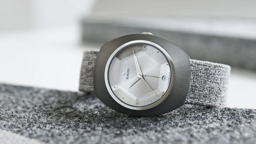 Возвращение модели 1960-х в корпусе Ceramos В этом году Rado отмечает 60-летие модели DiaStar: часы дебютировали в апреле 1962 года на выставке в Базеле (об истории модели мы рассказывали в год ее полувекового юбилея). В честь важной даты компания представила сразу четыре новинки: юбилейную версию DiaStar Original 60-Year Anniversary Edition, разработанную совместно с швейцарским промышленным дизайнером Альфредо Хэберли (до проекта с Rado Хэберли он создавал посуду для Iittala и разработал диван для Andreu World), а также три DiaStar Original с синим, серым и зеленым циферблатом. Все модели отличает корпус узнаваемой формы с верхней частью из Ceramos и сапфировое стекло с гранями. Корпус и циферблат DiaStar Original 60-Year Anniversary Edition оформлены в одной монохромной гамме. Часы дополняет сапфировое стекло с гранями в виде шестиугольника. Так Альфредо Хэберли отмечает шесть десятилетий с момента выпуска оригинальных часов. Корпус 38 х 45 мм изготовлен из стали, но верхний ободок