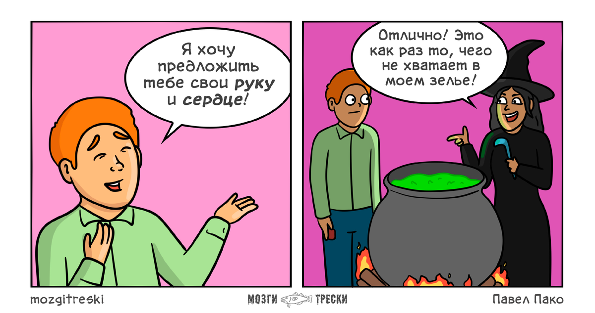 С недавних пор в своей группе Мозги трески я начал делать по воскресеньям тематические подборки своих старых комиксов. Материала за годы творчества накопилось много и комиксов на некоторые темы начало хватать, чтобы получилась подборка. Ну а для этого блога такой формат совсем не нов - с самого начала я выкладывал здесь комиксы по несколько штук, как правило, стараясь объединять их одной темой. И сегодня как раз такой случай - у меня накопилось 7 комиксов про ведьм, которыми я и спешу с вами сегодня поделиться. Надеюсь, что вам понравится! Сначала как обычно на всякий случай представлюсь - зовут меня Павел Пако и вот уже более пяти лет я рисую комиксы. Те самые «Мозги трески», которые значатся в заголовке - это юмористическая серия веб-комиксов и один из моих самых известных проектов. Новые комиксы в рамкой этой серии появляются в сети каждый понедельник, следить за их выходом можно на моих страничках на сайтах ВКонтакте и Телеграм. В этом блоге я тоже время от времени делюсь с читател