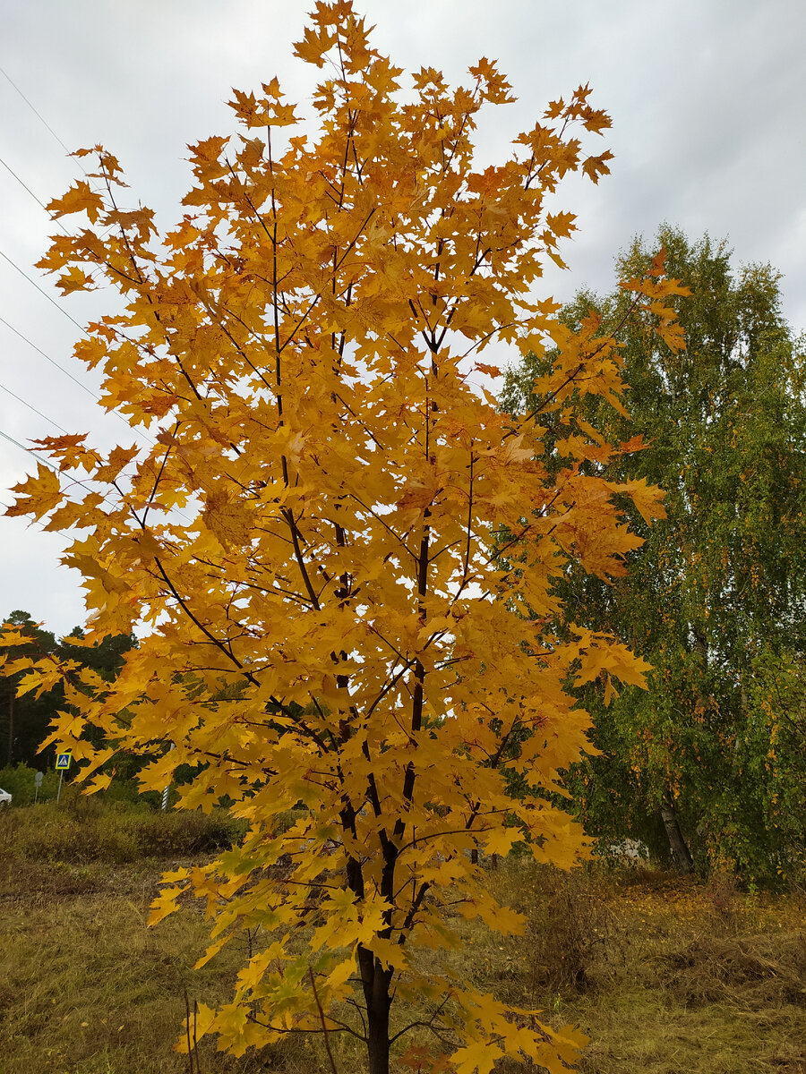 Несколько лет назад я принесла и посадила в огороде маленький клён. Всего пару листочков и высотой см 15. Малыш)) Но через год он оказался на месте где дорожку решили сделать. Пересадили. Подрос клён. Уже по колено стал и снова мешать стал. В этот раз попал под место где фундамент бани делают😔 Снова пересадили. И вот не понравилось ему что-то на новом месте: не рос, ветки каждую зиму сушил😞 Решили мы его тогда высадить на свободу - на поляну за участком. Решили - выживет, значит хорошо. Нет, значит не судьба... А он не просто выжил, а стал активно расти))) И вот теперь нас радует : весной - распускающимися почками, летом - зеленью, зимой - кроной ажурной. Ну а осенью самый красивый наряд - яркий, золотой🥰
