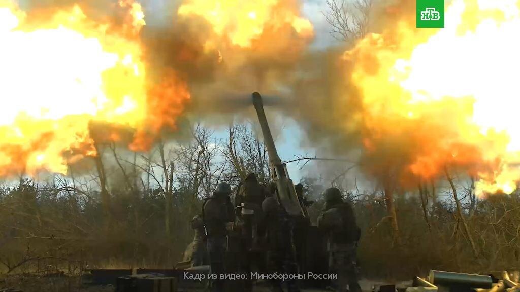 [ Смотреть видео на сайте НТВ ] Расчеты российских самоходных гаубиц «Гиацинт-С» уничтожили на Украине целую батарею американских М-777. Как рассказал командир расчета «Гиацинт-С», эта цель была для него самой запоминающейся и массовой. «Была уничтожена батарея трех „семерок“ (гаубицы M777 производства США, — Прим.ред.), два орудия точно сожгли, остальные пострадали», — сообщил он. В Минобороны РФ отметили, что расчеты российских гаубиц, выполняющие задачи в зоне спецоперации, ежедневно наносят удары по огневым позициям артиллерии ВСУ, удаленным от линии соприкосновения. [ Смотреть видео на сайте НТВ ]