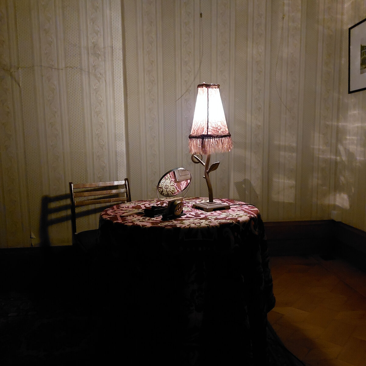 По традиции, спектакль начался в привычном для нас основном театральном зале Особняка купца Носова. А вот далее, совместно с героями «Варшавской мелодии», зрителям предстояло перемещаться по всему историческому зданию. Подниматься по его старинным чуть поскрипывающим от неспешных шагов лестницам, проходить по затемненным и всегда скрытым от посторонних глаз коридорам.