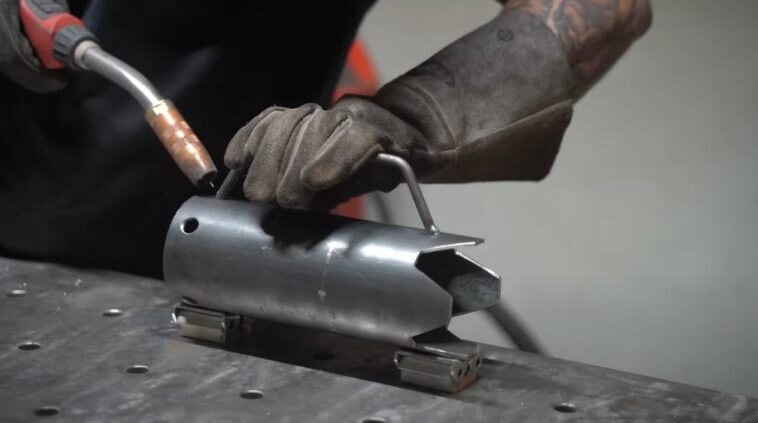 Достоинств у этой печурки очень много: компактная, легкая, работает на опилках — не надо никакие веточки собирать или щепки строгать топором. Сделать такую печку очень просто, потребуется только круглая труба и кусочек листового металла. Также надо будет сделать еще одно приспособление, без которого не получится печь длительного горения. Необходимые материалы: Своим личным опытом изготовления походной мини печи поделился с нами автор YouTube канала Hassan Abu-Izmero. Берите на заметку. Основные этапы работ Первым делом отрезаем кусок круглой трубы подходящей длины — это будет «тело» печи (она же камера горения). В верхней части с помощью болгарки или электролобзика вырезаем четыре «лепестка», чтобы можно было установить чайник, кастрюлю или сковороду. Из листового металла толщиной 3—4 мм вырезаем заглушку, вставляем ее в нижнюю часть трубы, после чего обвариваем. Получилось дно. На следующем этапе в нижней части трубы высверливаем пару отверстий для доступа кислорода и чтобы можно был