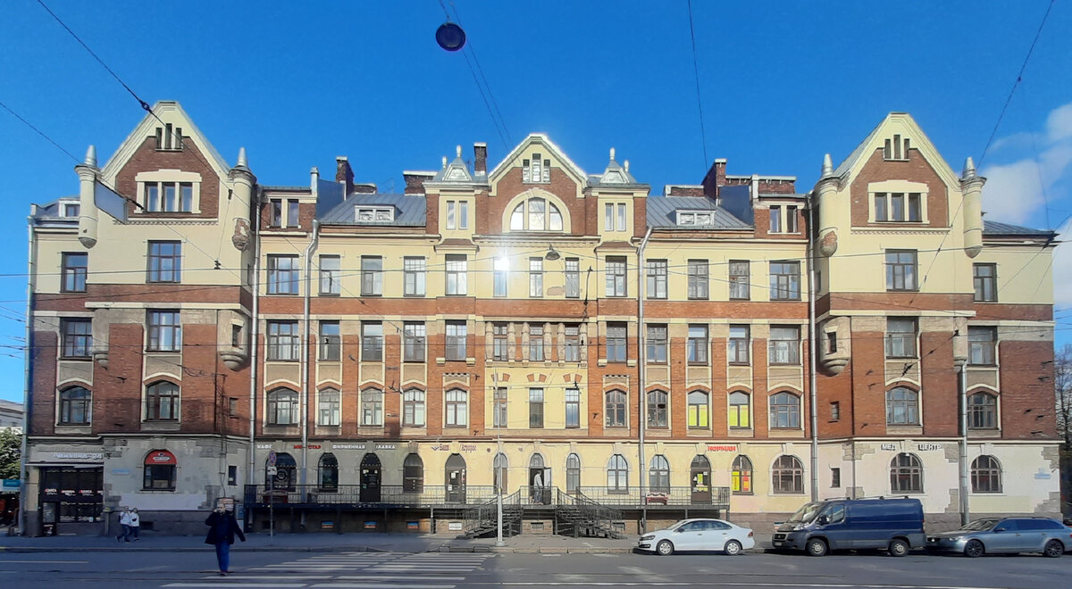 Пожалуй это самые привлекательные дома в окрестностях Финляндского вокзала. Они сразу обращают на себя внимание отделкой фасадов, примечательными башенками и разнообразием окон. Построены они были очень быстро, в один строительный сезон, в 1907-1908 годах по проекту архитектора Фёдора Фёдоровича Миритца и гражданского инженера Ивана Ивановича Герасимова. Жилой комплекс состоит из трех отдельных зданий. Это два Г-образных корпуса и между ними еще один прямоугольный. Такое расположение домов создает некоторую камерность и закрытость, но при этом не образует совсем уж замкнутого колодца, в котором солнце - редкий гость. Квартиры в комплексе предназначались для работников Финляндской железной дороги низшего ранга. Именно этим объясняется тот факт, что тут совсем нет больших, "барских" квартир. Изначально тут были построены одно- и двухкомнатные квартиры. Вот пример изначальной планировки, только ванная скорее всего была отнорожена из кухни потом: На этаже всего три квартиры. И очень