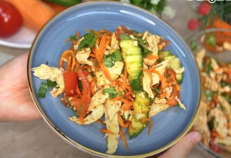 Салат со спаржей и корейской морковью, рецепт простой и вкусный