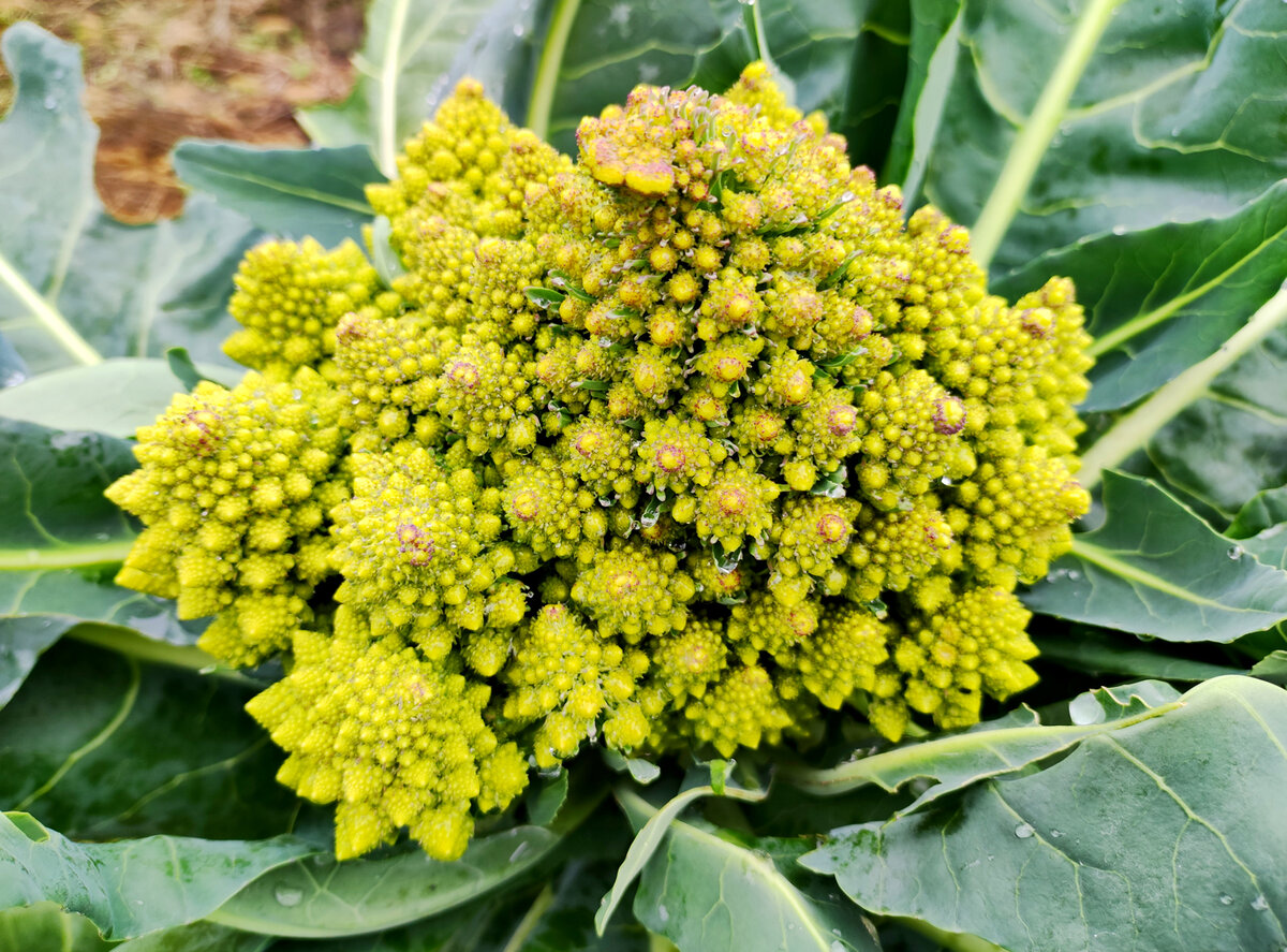 Она же римская капуста, она же критская капуста. Ее так же называют цветной и брокколи, амфорной, пирамидальной и даже космической, но что же это за овощ на самом деле и с чем его едят? Впервые я ее попробовала лет пять назад. Интересный вкус. Потом при случае покупала, но на рынке она продается редко. В этом году и совсем не видела. Оказывается, она не сильно популярна и имеет маленький срок хранения. Весной в семенном магазине увидела семена. В пачке 5-7 зерен и всхожесть 100%. Все с ней как всегда. Рассада, огород. Поливали не часто и, как оказалось, она не очень-то и требовательная к воде. Любит тепло. Сейчас еще в процессе созревания. Эта капуста относится к диетическим и легкоусвояемым продуктам, на вкус не похожа ни на брокколи, ни на цветную. Ее вкус сливочно-ореховый без горчинки, фактура тоже более нежная. И еще... Эта капуста не имеет специфического капустного вкуса и запаха. Я ем ее, как и цветную, сырой, добавляю в салаты. Но приготовить ее можно как и цветную. Важно