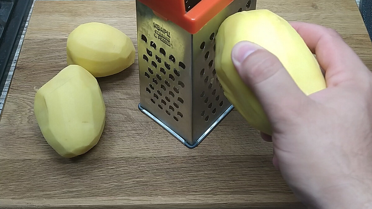 Для этого рецепта понадобятся 3 картофелины. Натираем их на крупной терке.