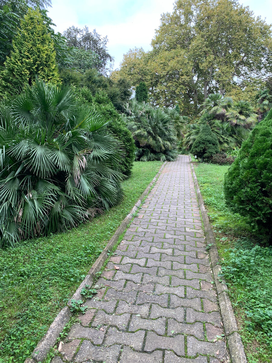 На горе Зеленый Мыс, в 9 километрах от Батуми, на 120 гектарах раскинулся Ботанический сад - гордость Грузии и одно из излюбленных мест отдыха и местных и туристов. Аллеи сада спускаются с горы вниз ярусами. Сверху вниз идет Гималайская зона, переходящая в зону Средиземноморья. Говорят, что даже за пару дней весь сад не обгулять. Мы пришли на несколько часов и вот как все было. Мы, как рекомендовали нам знающие люди, вошли в сад через верхний вход, чтобы идти потом вниз с горы, а не наоборот. У верхнего входа есть только касса, а у нижнего - магазинчики, палатки с мороженым и водой, торговые сувенирные ряды и стоянка такси. У верхнего входа вы даже воды купить не сможете. Но набрать воды можно на территории сада, там везде организованы питьевые фонтанчики. И на верхнем и на нижнем входе расположены кассы, билет в сад стоит 20 лари. По территории также можно передвигаться на мини автобусе, билет платный -10 лари. Теперь о самом саде. Он великолепен. Тут перестаешь думать о времен
