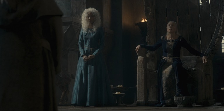 В первую очередь потому, что правит Алисента, которая даже не удосужилась согласно этикету выйти и встретить дочь и брата короля Визериса как подобается.