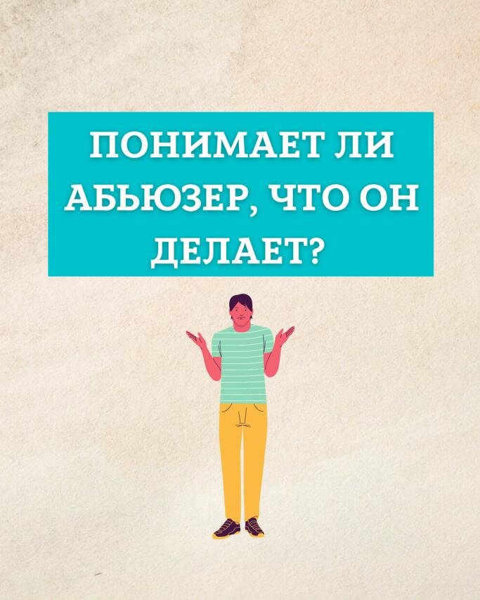Приветствую заглянувших! Сегодня обсудим вопрос, которым задаются многие люди. Понимает ли абьюзер, кем он является? Сознательно ли он делает свои «темные» дела? Я не могу определить в процентном соотношении, но в жизни бывает по-разному, иногда абьюзеры полностью осознают, что творят, а иногда действуют бессознательно. Для Вас это становится проблемой, если Вы хотите точно знать. Но это совсем не важно в том случае, если Вас попросту не устраивает поведение и отношение к Вам абьюзера. Исходя из своей практики, могу предположить, что большинство (хотя и не подавляющее) либо «не ведает, что творит», либо осознаёт лишь частично. Тем не менее остальные, особенно обладающие нарциссическими чертами, прекрасно понимают, что делают. К сожалению, они понимают это настолько хорошо, что продумывают стратегию, как подчинить себе «жертву». Среди них есть те, кто по каким-либо причинам не может жить по-другому, для них это единственный доступный сценарий контролировать жертву. Кому-то из данных