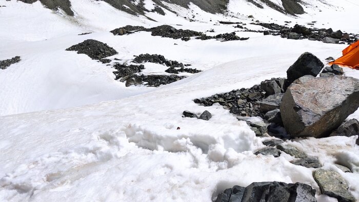 Выдался интересный 9-тидневный поход в алматинские горы. И вот на высоте 3600 метров (ледник Богатырь, Талгар) встретился такой товарищ (простите за расфокус...), который был напоен и отпущен. Времени разводить сахар в воде не было, поэтому пришлось жертвовать водой со сгущенкой. Съедено товарищем было почти целая ложка смеси. А вообще, на такой высоте очень много живности насекомой встречается. Вот невзрачная точка в центре - бабочка. Очень так эпично на леднике бабочек лицезреть. А вот более удачный кадр. Мне так думается, что их снизу с "альпийских лугов" теплым потоком воздуха поднимает по ущелью. Иногда бывает прям целую тучу бабочек приносит, такое было в 2019 году, жаль не было телефона под рукой... Ну и на последок просто красивый вид с высоты 4300+ метров. З.ы.: если кому интересно могу про селезащитника-сусанина рассказать.