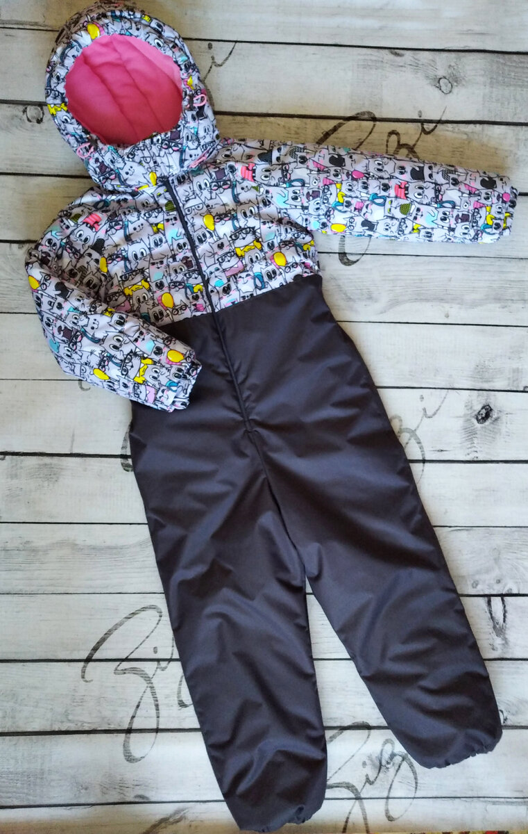 Ещё один зимний комбинезон в мою швейную копилку. Пришлось немного помучатся, потому что верхняя ткань тут мембрана. а шить её не так уж легко, если у тебя нет тефлоновой лапки. да и не факт, что она поможет. Дело в том, что мембранная ткань прорезинена и при пошиве, верхняя ткань растягивается, прилипает к лапке и образуется сборка. Прочитав огромное количество лайфхаков в интернете, как шить мембрану и перепробовав их, кстати ни один не подошёл. мы изобретали свои способы, заклеивала швейную лапку скотчем, малярных скотчем, увы, но лапка всё равно липла. Неожиданно вспомнила очень простой способ: подкладывать листик при пошиве, и тут всё пошло как по маслу. Конечно, потом приходится выбирать всю бумагу и затупилась в итоге иголка, но это лучше чем складки. А теперь, про комбинезон. сшит он на рост 128 см, рукав реглан, воротник и отстёгивающий капюшон. Верхний слой - мембрана Утеплитель- альполюкс 200 ( рассчитан на температуру до -22-30) Внутри- флис. Тёплый, необъёмный, удобный.