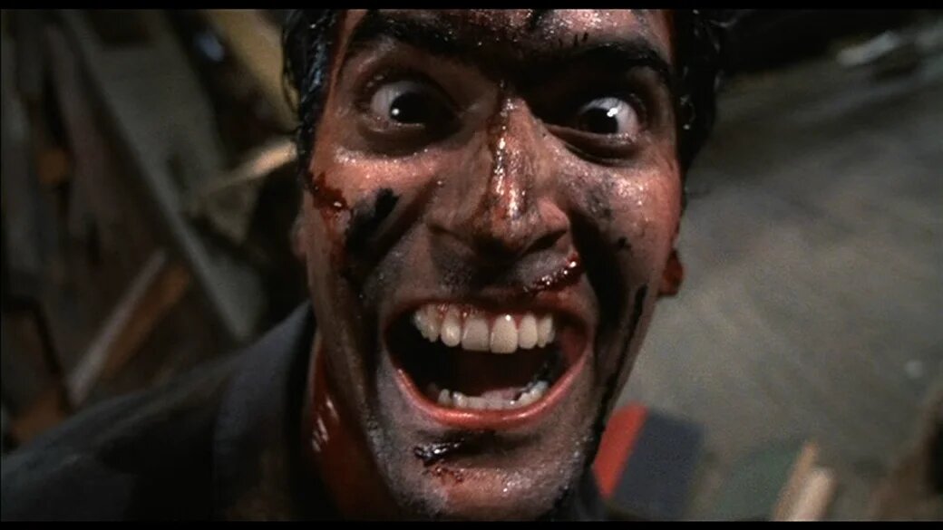 Один из лучших фильмов Сэма Рейми стоит на грани хоррора и комедии абсурда, и именно поэтому он заслужил место в нашем топе. Несмотря на цифру в названии, это скорее ремейк оригинального Evil Dead, который Рейми снял в 1981 году с группой друзей за жалкие 350 $ тысяч, так что первую часть можно спокойно пропустить. Начинается все с типичной «хижины в лесу»: темная чаща, монстры, напуганные парочки, но фильм в итоге не про это — это настоящий героический эпос на новый лад, классическая история о том, как обычный человек вынужден найти в себе силы противостоять злу, преодолеть ужасы и не сойти с ума в процессе. Моменты хоррора здесь перемешиваются с черной комедией и откровенным абсурдом: сцены с танцующим скелетом, одержимой рукой и инфернально ржущей мебелью вызывают самые смешанные чувства — на первый взгляд они смешные и дурашливые, но стоит на секунду задуматься, и становится действительно жутко. В хоррорах того времени было не принято строить историю вокруг сильного, харизматичн