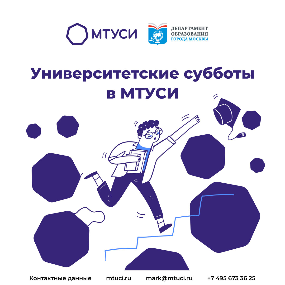 «Университетские субботы» — это новая форма дополнительного образования и интеллектуального досуга обучающихся, а также уникальная возможность повышения образовательного потенциала школьников и студентов колледжей Москвы. 15 октября в МТУСИ пройдут мероприятия в очном формате по адресу: ул. Авиамоторная д. 8 стр. 39 11:00 Экскурсия «Установка Квантового распределения ключа» 13:00 Мастер-класс по квантовой оптике «Исследование квантового распределения ключа» Для участия в мероприятии предварительная регистрация обязательна! По всем вопросам обращайтесь в департамент маркетинга и коммуникаций по телефону +7 (495) 673-36-25. Контактное лицо: Абрамова Милана, m.l.abramova@mtuci.ru.