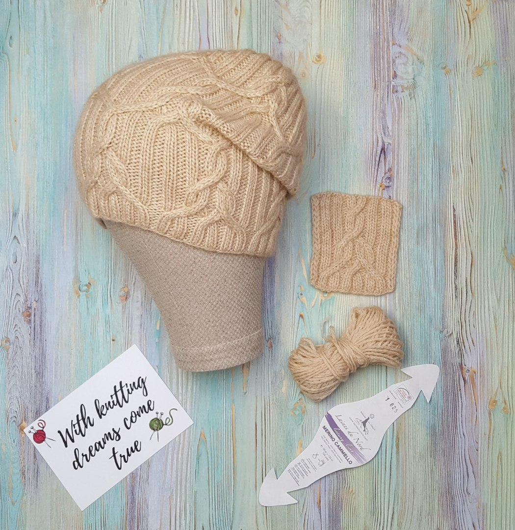 Пряжа Merino cammellо от Laines du nord, шнурок из мериноса и верблюда, 133 м в 50 г. Расход чуть меньше 2 мотков, остаток второго мотка на фото. Спицы 3,5. На эту шапочку набрано 144 петли (это 6 рапортов по 24 петли). Шапка получилась очень легкая, практически невесомая, мягкая и слегка пушистая. Макушка красивая и ровная. Размер шапки после ВТО: ширина 24 см, длина 30 см. Пряжа очень пластичная, хорошо драпируется. Отлично садится на размер от 56 до 59. Не тугая, прическу не мнет. Длину шапочки можно изменить, если не вязать один рапорт узора в высоту, а сразу перейти к убавкам. Здесь делайте так, как вам нравится. На схемах представлены ВСЕ ряды. Набираем петли и вяжем. Сначала схему основного узора, затем схему убавок макушки. Единственное, учтите, что ряд 55 первой схемы - это ряд 1 второй схемы.
