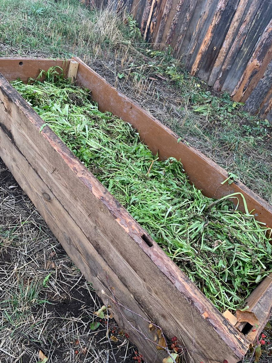 Начало - тут. Через неделю наши грядочки, наполненные ветками, сеном, картоном, падалицей и опавшими листьями, немного осели, и мы добавили слой сочной зеленой травы с заболоченного берега озера. Затем - толстый слой опавших листьев из леса (не сфоткала). И снова присыпали землей. В ближайшее время пойдем копать САПРОПЕЛЬ. И грядок, кстати, уже стало три: Еще я как дурочка вчера искала по участку дождевых червячков и переселяла их в грядку)) Пусть делают там гумус, нуачто)))))