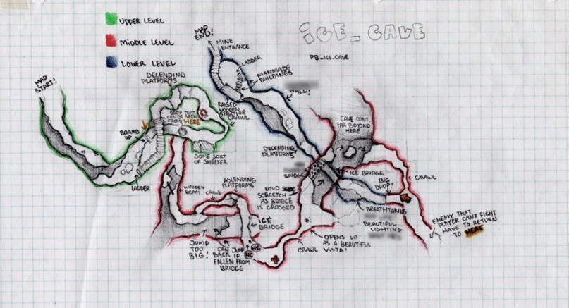 Этот уровень охватывает часть нашего сценария, где Гордон вынужден в одиночку пройти сквозь суровые ледяные пещеры и заброшенные тоннели. Для начала, используя этот сегмент сценария, наши концепт художники создали первоначальные раскадровки и художественные произведения устанавливающие настроение и тон области.