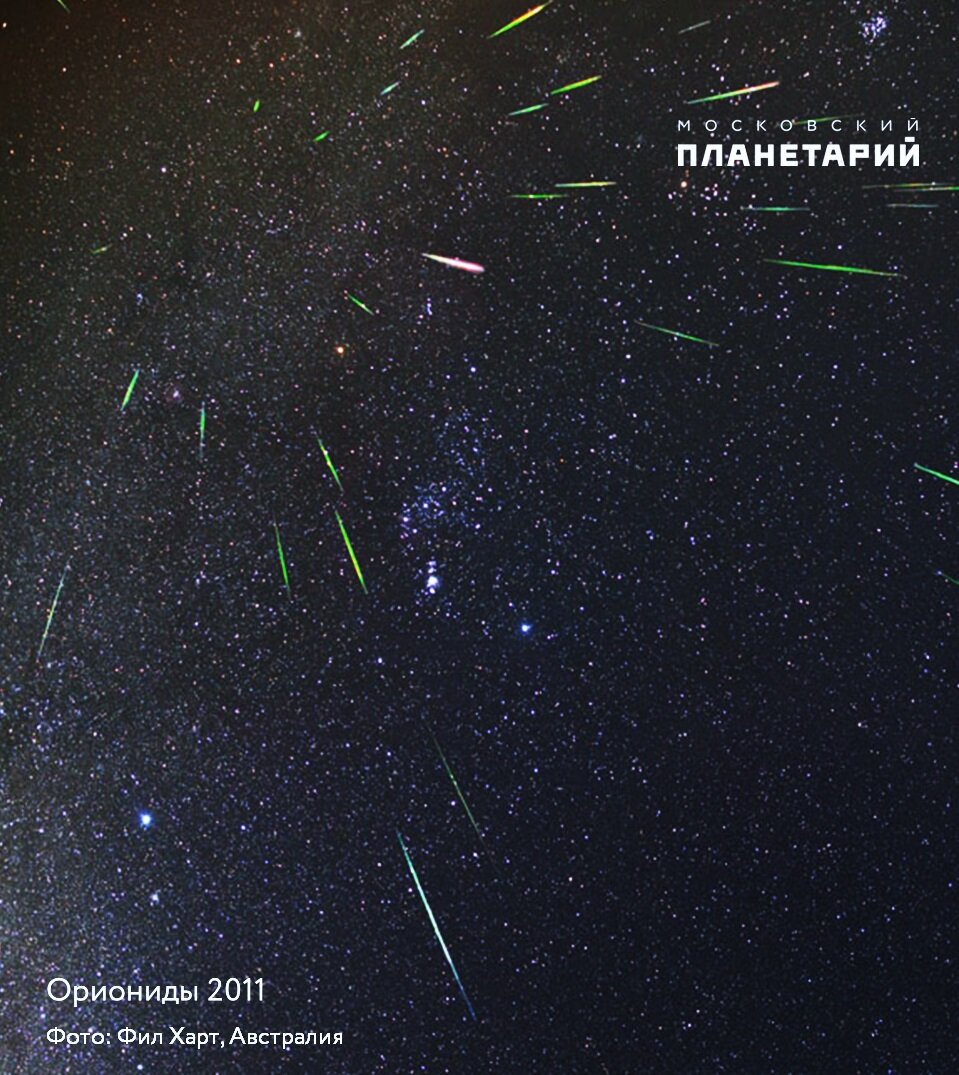 В ночь с 20 на 21 октября наблюдаем Ориониды! В 20-х числах октября достигнет своего максимума метеорный поток из созвездия Орион – Ориониды. Он действует ежегодно в октябре с максимумом активности около 21 октября. Это периодический метеорный поток средней силы. В пик активности он дает около 20 метеоров в час. Активность Орионид часто остается почти на одном уровне несколько последующих ночей после пика. Комета прародительница Орионид Ориониды рождены шлейфом частиц оставленных знаменитой кометой Галлея (1Р/Halley) – самой известной среди периодических комет за которой наблюдают с древних времен. Она возвращается к Солнцу каждые 76 лет, появляясь на ночном небе Земли. Последний раз она подлетала к Солнцу в 1986 году и насытила свою орбиту частичками кометной пыли. Следующий раз она пролетит близко к Солнцу и Земле только в июле 2061 года. Орбита кометы Галлея дважды пересекает орбиту Земли и оставшиеся на ней частички кометной пыли устремляются в земную атмосферу дважды в год, образ