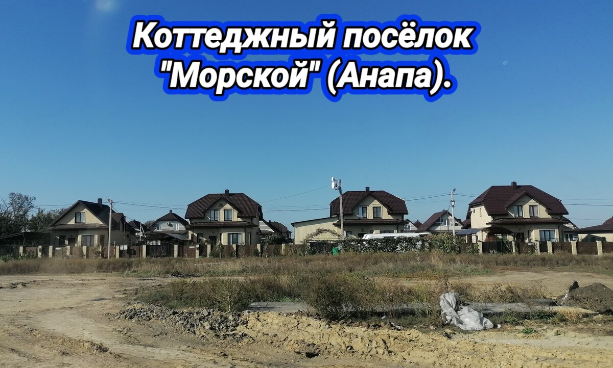 Привет. Я каждое утро проезжаю коттеджный посёлок "Морской", но в нём ни разу не был. На въезде я увидел офис продаж, решил в него зайти. Сейчас расскажу, что мне удалось узнать. Посёлок "Морской" расположен в Краснодарском крае вдоль трассы А-290 около Северного обхода Анапы. До центра города Анапы 14 км, а до центра села Витязево 10 км. Имеет 5 улиц: 1) Солнечная улица. 2) Цветочная улица. 3) Малиновая улица. 4) Земляничная улица. 5) Ореховая улица. Рядом населённые пункты: - село Цибанобалка (3 км). - посёлок Пятихатки (1-2 км). - СОТ "Кубань" (около 2 км), Посёлок «молодой», его строительство началось в 2017 году. На данный момент построено около 100 домов, провели электричество, газ, централизованное водоснабжение, у каждого дома индивидуальная канализация, установили уличное освещение. Вся территория посёлка огорожена забором, установлен шлагбаум на въезде, сидит охрана. Застройщик все дома строит из газопеноблока, обшивает жёлтым кирпичом или покрывает серо-белым короедом.