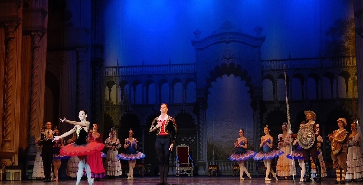 В рамках фестиваля «Видеть музыку», седьмого по счёту, славный театр из Сыктывкара, где балетом руководит Андрей Меркурьев, привёз своего «Дон Кихота» и спасибо им за это – вечер понедельника удался на славу! Естественно, придирчивые профессиональные критики наверняка пробухтят на тему имевших место шероховатостей в исполнении, замеченных и мной. И да, не стоит сравнивать уровень артистов с Большим, к примеру, однако для меня важнее всего всегда другое – идут ли эмоции со сцены, горят ли глаза, летят ли искры из линолеума. Только это может захватить меня, зрителя, а не каноничность арабеска, и они всем составом выдали – шли, горели, летели! Впечатлён! Постановка традиционна, и в ней присутствуют многочисленные хиты этого балета от подбрасывания Санчо Пансы, до поддержки Китри на одной руке. И хотя хореография адаптирована под возможности исполнителей, я бы не стал называть её упрощённой, а зрелищность уж точно не ущемлена никоим образом. Конечно, в силу ограниченного размера труппы мас