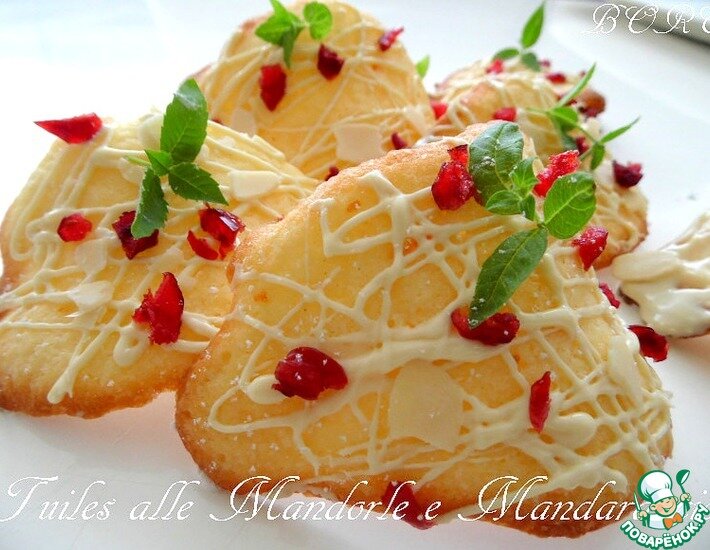 Итальянское печенье. Ароматное, нежное, с апельсиновой ноткой, нежное и очень вкусное. Ингредиенты для «Черепица с миндалем»: Рецепт «Черепица с миндалем»: Смешать все ингредиенты кроме яйца, масло должно быть мягким, замесить тесто и добавить взбитый белок, перемешать, тесто. Выкладываем ложкой на противень и посыпаем лепестками миндаля и выпекаем 180=7 минут. Печенье печётся довольно быстро. После вынимаем и выкладываем на скалку (которой раскатываем тесто, или на стеклянную бутылку), делать это нужно быстро и не много загибаем края. Украсить по желанию. Я растопила белый шоколад, полила сверху и посыпала клюквой. ПРИЯТНОГО ЧАЕПИТИЯ. Комментировать >>> Понравился рецепт? Ставьте лайк и присоединяйтесь к нашему каналу!