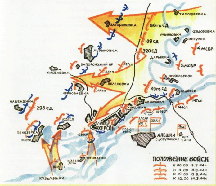 Василий Филиппович Маргелов, легендарный командующий ВДВ, был удостоен геройского звания за освобождение Херсона. Тогда же Героем Советского Союза стал еще один генерал, но в начале 1948 года его неожиданно арестовали… Херсон начали освобождать от фашистов 16 декабря 1943 года. Успех был достигнут не сразу. Бойцам 49-й гвардейской стрелковой дивизии потребовалось пять дней для взятия херсонского плацдарма противника на левом берегу Днепра (с железной дорогой и мостом через Днепр). Этот плацдарм следовало захватывать обязательно. Без этого весьма затруднительно было форсировать Днепр. Кроме того, существовала угроза удара во фланг вдоль берега. Выбив с плацдарма подразделения 4-й горно-стрелковой дивизии Вермахта, усиленные танками и орудиями, советские военачальники приступать к штурму гор. Херсона не спешили. Был высок риск потерпеть здесь неудачу. 15 января 1944 г. командиром 49-й гвардейской стрелковой дивизии был назначен полковник Василий Филиппович Маргелов. В марте обстановка
