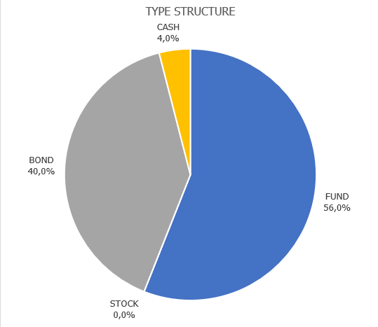 На прошлой неделе я обещал опубликовать данные о том как выглядит совокупный портфель мой и моих клиентов, когда описал ситуацию с текущими инвестициями по стратегии Инвестинг в УК ФБ Август. Я привык держать слово, поэтому публикую данные и некоторые комментарии. Как выглядит структура портфеля? По понятным причинам, я не могу опубликовать отдельный портфель, но совокупный не является распространением персональных и индивидуальных данных, поэтому в среднем он неплохо отражает реальную картину. Как видно из диаграмм, и о том, что я писал в своих постах текущая доля в акций в портфеле составляет 15%, а из диаграммы TYPE STRUCTURE видно, что это тип активов у меня целиком приходится на индексный фонд широкого рынка, так как нет отдельных акций - а есть общая категория FUNDS. Вложения в золото составлюят 12%, при этом есть разброс в портфелях от 5% до 17%, и связано это с тем, что клиенты заходили в разное время и доля росла неравномерно. При этом здесь есть такой нюанс, что у некоторых