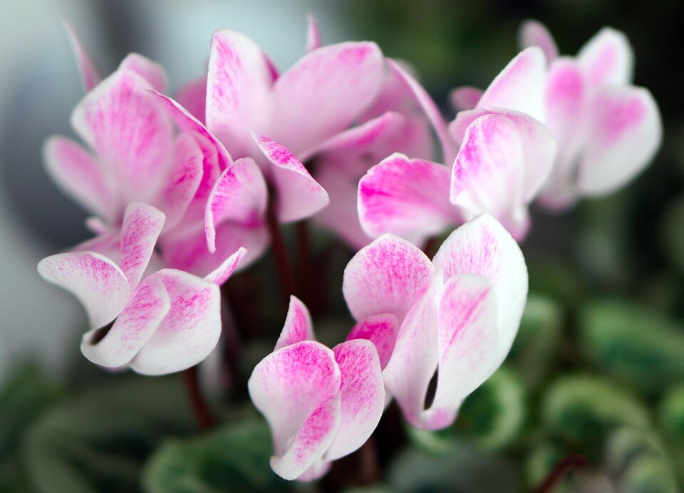 Для правильного роста и развития домашнему Цикламену необходим солнечный свет, определенная температура и регулярный полив через поддон. Он поглощает только часть жидкости, а остальную воду необходимо слить, чтобы не подвергать растение опасности гниения. Цветок трудно адаптируется к комнатным условиям, поэтому необходимо использовать подкормки. Особенно важно это делать во время цветения, потому что в указанный период Цикламен активно поглощает питательные вещества из почвы. Подкормки и удобрения можно использовать различные. Главное, чтобы в них содержался калий и магний. Лучше использовать подкормку во время полива растения. Но чрезмерное употребление также нежелательно. Цветок начнет набирать зеленую массу и откажется цвести.
