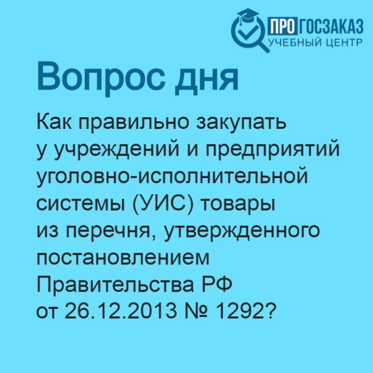 Как правильно закупать у учреждений и предприятий уголовно-исполнительной системы (УИС) товары из перечня, утвержденного постановлением Правительства РФ от 26.12.2013 № 1292?