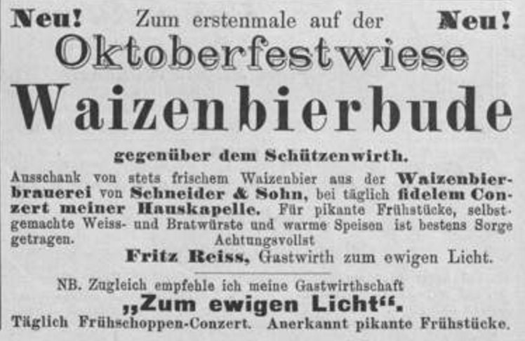 Когда дело доходит до пивной культуры в Мюнхене, вероятно, нет ничего более знакового, чем Октоберфест, огромная ярмарка, в основном посвященная распитию пива в больших палатках, музыке умпа и традиционным баварским ледерхозенам и дирндльнам. Однако корни этого праздника были более царственными, так как он начался как свадебное торжество баварского кронпринца Людвига I и принцессы Терезы в 1810 году. С годами он превратился в ежегодную ярмарку со скачками, стрельбой и другими аттракционами. Конечно же, подавали и пиво, и это любимое занятие мюнхенцев со временем перешло на празднества. В 1872 году Михаэль Шоттенхамель искал пиво для продажи в своей палатке на Октоберфесте. Из-за необычно жаркого лета большая часть Sommerbier уже закончилась, и, поскольку он не хотел подавать Winterbier, Шоттенхамель обратился к Йозефу Зедльмайру из Franziskaner-Leistbräu. Седлмайр сказал ему, что в настоящее время у них есть более крепкое пиво, сваренное в венском стиле, и что оно должно быть в отличн