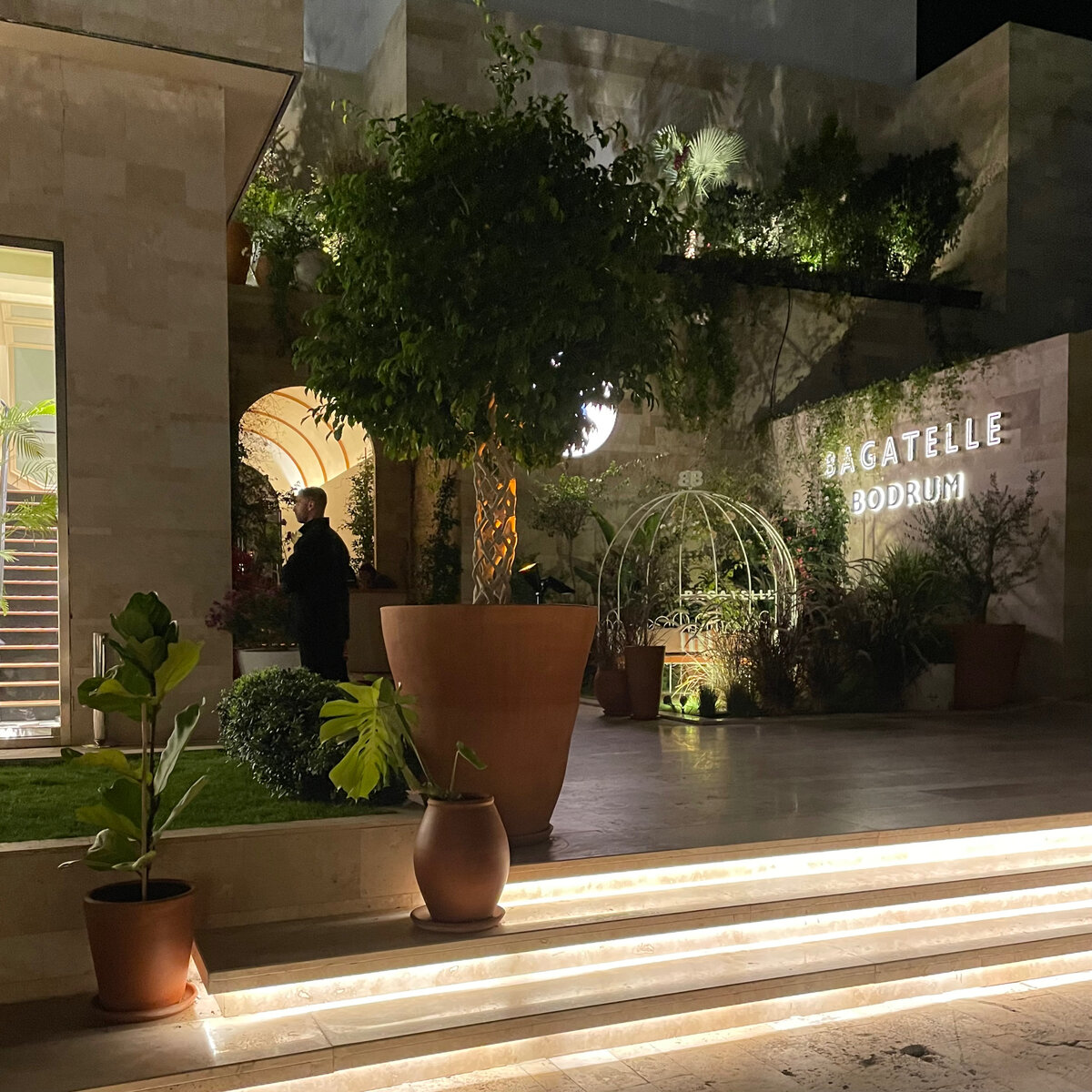 В переводе с французского Bagatelle – это «безделушка» или «пустяк». В Ялыкавак этот пустяк получился совсем не пустяковый, а очень даже дорогой. Открытие вечером, в 19:00. Вход, как в Москве, через стойку приветствия и суровые взгляды хостес, тут же проверяющих наличие брони (при пустом зале).