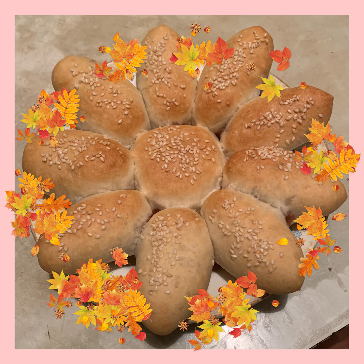 Вкусный пирог к чаю с начинкой из варенья. Мягкий, в меру сладкий, легко готовится и быстро съедается 😊 Для начала приготовим тесто : В муку добавить дрожжи, соль, сахар, перемешать. Налить тёплую воду , растительное масло. Замесить мягкое эластичное тесто. Я вымешиваю тесто всегда руками. Оставить в тёплом месте подходить на 30 минут. После того, как тесто подойдёт , делю его на 10 частей, округляю. Каждый шарик раскатываю в пласт, в центр кладу 1 ч.л. сливового варенья ( на вкус можно брать любое варенье). Аккуратно защипываю края и формирую в виде продолговатого лепестка: Один шарик защипываю в форме круга: Собираю пирог в форме цветка : Сверху посыпаю кунжутом: Оставляю на 5-10 минут на расстойку и отправляю в духовку , разогретую до 180 градусов , на 25-30 минут ( время зависит от особенностей духовки). Наш пирог готов , приятного чаепития ☕️ Ингредиенты: мука - 250 г. дрожжи (быстродействующие) - 3 г. сахар - 1 ч.л. соль - 0,5 ч.л. растительное масло - 1 ст.л. вода - 1