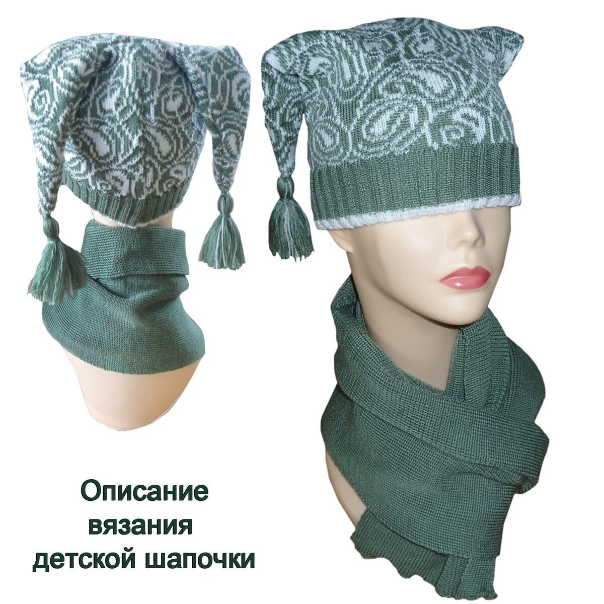 Данная модель представлена в размере ОГ = 44-50см Вязать его мы будем из пряжи полушерсть в бобинах 32\2 , нить в 3 сложения ( оттенок « кактус») и пряжа полушерсть 100г=800м, нить в 1 сложения( белая нить). Общий вес готового комплекта составляет примерно 300 гр. Вязать его мы будем на машине SILVER REED SK-840 , так же – это может быть любая двухфонтурная машина перфокарточная . В случае , если это будет перфокарточная машина, а не компьютерный вариант, Вам надо будет самим набить перфокарту( если такой в наличии нет), либо вязать другим рисунком. Шапочка связана однофонтурным жаккардом. Подкладшапочки – это резинка 2/2. Рисунок взят из программы книттстайлер КС 4 № 3 Начнём наше вязание с шапочки. Модель вяжется из одной части , которая сшивается сзади. Обратите внимание , что выкройка не включает в себя резинку шапочки. Выкройка только на ту часть шапочки, которая вяжется рисунком. Резинка считается отдельно. Строим выкройку Шапочка связана из полушерсти в бабинах 32/2 нить в