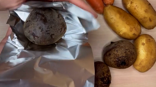 1. Для начала приготовим овощи. Вымойте их💧 и заверните в фольгу.