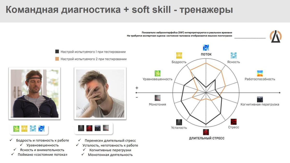 Нейроинтерфейс: технология для неинвазивного «чтения мозга» (альфа и бэта ритмы). В области образования они в основном применяются для мониторинга состояний в процессе обучения. В обучение вовлечен ряд нейрокогнитивных процессов, таких как, например, память, восприятие, внимание и др., которые лежат в основе познания и, по сути, отвечают за результат образовательной деятельности. Поэтому прямой доступ к информации об этих процессах (например, их мониторинг), а также возможность управления ими способны дать новые инструменты в персонализированном обучении и вывести образовательные практики на принципиально новый уровень.