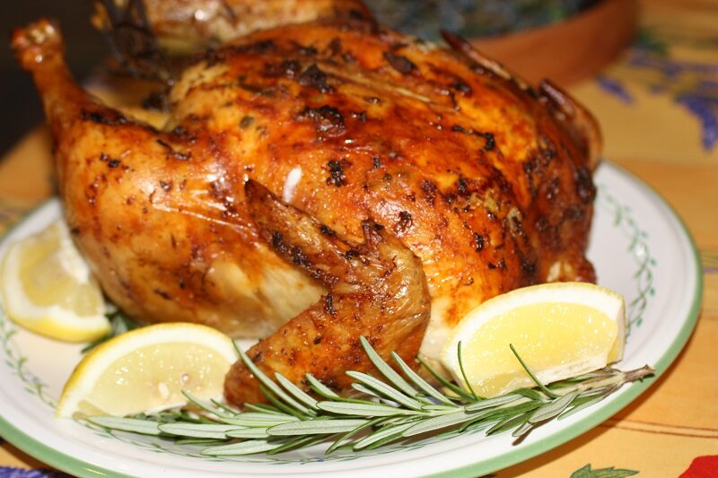 Приготовить курицу целиком не так просто как кажется. Может случится так, что сверху тушка начнет пригорать, оставаясь внутри еще сырая. Подать такую курицу на стол - настоящая трагедия. Именно по этой причине некоторые отказываются от приготовления курицы целиком. Ведь подобного не случается с отдельными частями тушки - крыльями, окорочками или бедрышками. Но курочка, приготовленная целой тушкой на столе смотрится шикарно. И, если Вы хотите удивить и вкусно накормить гостей или домашних. то прислушайтесь к следующим советам по запеканию курицы целиком. Время запекания Время запекания курицы в духовке зависит от самой курицы, точнее от ее габаритов. Нужно запомнить следующее правило 1 килограмм курицы - это 40 минут приготовления. Процесс запекания Первые 25 - 30 минут курицу следует запекать при максимальной температуре, то есть 220*С. За это время на курочке образуется корочка, которая запечатает соки внутри. Затем температуру снизить до 150*С - 170*С и запекать до готовности.