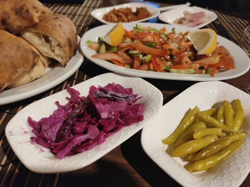 В разных регионах страны набор закусок может отличаться. Но по умолчанию вам почти всегда дадут: острый перчик, салат и хайдари - густой соус из сюзьмы (местного очень густого йогурта) с чесночком, маслом и мятой, зачастую еще и укропчиком. Макаешь лепешечку в хайдари - и для счастья-то уже ничего не надо!