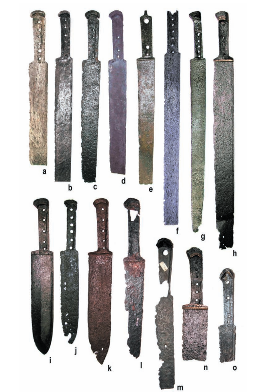 Пока исследовано около двух десятков клинков. Часть из них откована из единой железной (самый редкий вариант) или стальной заготовки, но абсолютное большинство, более 70% - сварные.