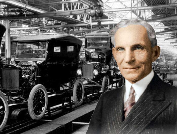 Значимость личности Генри Форда в истории автомобилестроения переоценить сложно. Будучи молодым человеком, он исполнял обязанности инженера-механика, позже главного инженера в «Электрической компании Эдисона» (Edison Illuminating Company), а в 1893 году в свободное от работы время сконструировал свой первый автомобиль. Став совладельцем «Детройтской автомобильной компании», вскоре он из-за разногласий с компаньонами ушёл из неё и в 1903 году основал Ford Motor Company. Именно здесь в 1908 году будет выпущена легендарная модель T, совершившая революцию сразу во многих аспектах, среди которых — низкая стоимость, долговечность, универсальность и простота обслуживания.