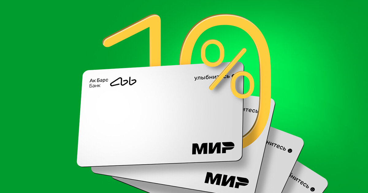 В конце весны и летом многие банки изменили программы лояльности — сократили размеры кешбэка. Например, раньше держатель карты получал за покупку товаров кешбэк 1-2%. С мая банки снизили бонусные выплаты до 0,3-0,5% от покупки. Но так поступают не все банки. Например, Ак Барс Банк, наоборот, возвращает клиентам до 10% на все покупки. В статье расскажем об акции и продуктах, которые в ней участвуют. Подробности акции С 1 июля 2022 года Ак Барс Банка запустил беспрецедентную акцию — возвращает 10% за все покупки и услуги, которые клиенты оплатили на территории России. Если держатель карты отправляется в отпуск, командировку или к друзьям в другой город и там оплачивает покупки картой Ак Барс Банка, он тоже получает бонусы. Оплачивать покупки и получать повышенный кешбэк можно до 31 декабря 2022 года, за декабрь банк выплатит бонусы до 25 января 2023 года. Кешбэк начисляют на любые покупки: в обычных и интернет-магазинах, на маркетплейсах, за оплату услуг. Если клиент оплатил картой услу