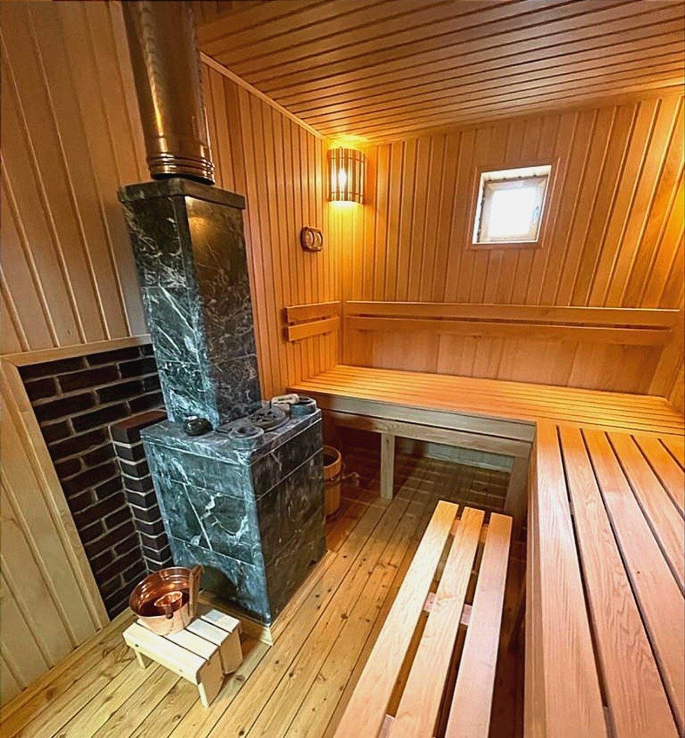 Утепление пол, стен и потолка, материал дверей, площадь остекления влияют на теплопотери, а значит от них самым непосредственным образом зависит выбор сердца русской бани. Панорамное окно в парной, стеклянная дверь увеличивает теплопотери. 3. Обращаем внимание на материал стен.