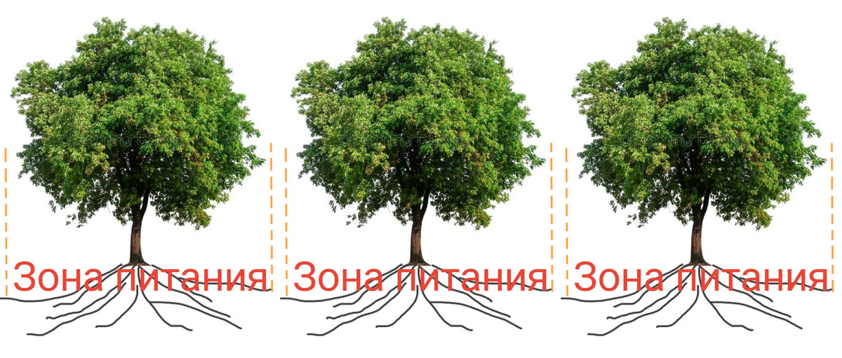 Мы уже обсуждали, что высаживая плодовые деревья нужно соблюдать между ними дистанцию. Следует учесть: Мы всегда должны знать до какого размера вырастут деревья через 10 - 15 лет. И ВСЕГДА закладывать в проект своего сада этот размер. Декоративные растения мы можем сажать ближе друг к другу. Называем это загущенными или уплотненными, плотными посадками. Если нарисовать вид сверху, уплотненная посадка выглядит примерно так: Мы видим, что и зоны питания, и зелёная масса растений пересекаются. А как же конкуренция? Здесь важно соблюдать 2 условия: 1. Одновременная посадка растений Мы сажаем растения в миксбордер одновременно, а не подсаживаем их к взрослым, уже существующим. В этом случае "молодежь" вынуждена приспосабливаться к ситуации: искать новые зоны питания, делиться, "договариваться" друг с другом. При единовременной посадке все растения в равных условиях. Это позволяет нам сажать их близко. 2. Разноуровневая посадка Зелёная масса растений должна находиться на разных у