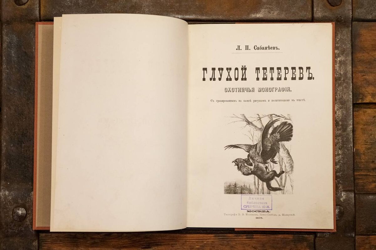 Леонид Павлович Сабанеев – ученый, охотовед и кинолог, создатель журнала “Природа и охота”. В своих книгах пишет о российской природе, а также наблюдения о поведении животных и рыб – этим он внес большой вклад в развитие охоты и рыбалки в Российской империи. Еще в лицее Сабанеев увлекся естественной историей. Затем он стал вольнослушателем на естественном отделении физико-математического факультета Московского Университета, через 4 года завершив обучение со степенью кандидата естественных наук. Леонид Павлович стал первым организатором собачьих выставок; Сабанеев во второй половине XIX веке олицетворением русской охоты и вывел ее на новый уровень. Благодаря его зоологическим работам и тонким наблюдениям был внесен ценный вклад не только в охотничью и рыболовецкую области, но и в российскую зоологическую науку. “Глухой тетерев” – одно из таких ценных произведений. Эта охотничья монография, посвященная повадкам, ареалу обитания и особенностям глухарей. Книга была выпущена в типографии И