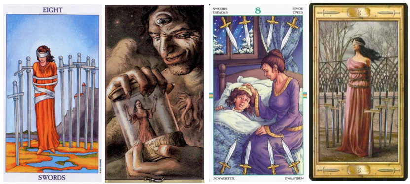 Как и все мечи, 8ка непроста и неоднозначна. На первый взгляд она кажется резко отрицательной, неприятной, наисложнейшей, однако, не все так просто, это ведь Таро)