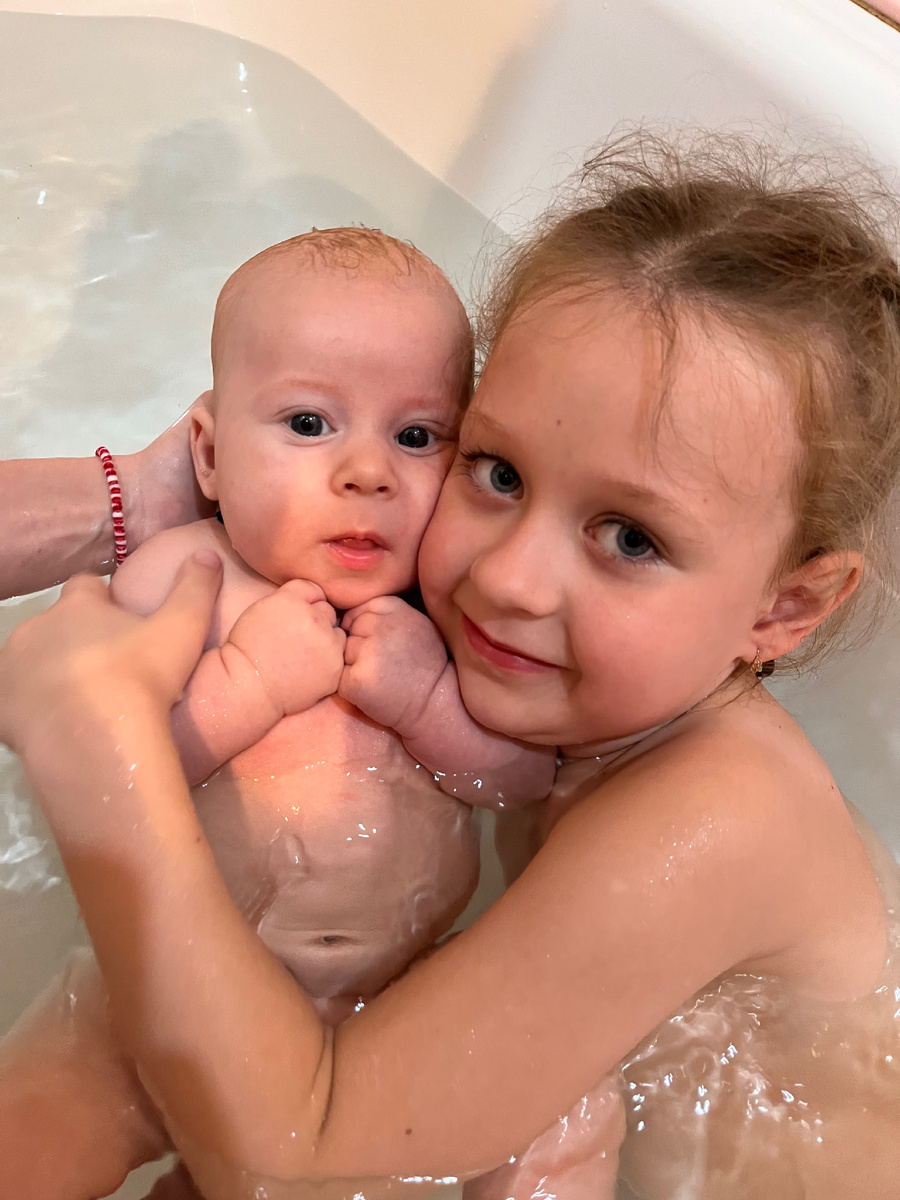 Эти двое ну очень любят воду. Не зря родились под водным знаком рака🦞 Могут часами плавать что в ванной, что в речке. В именно поэтому решила я записать обоих в бассейн. И плавать научатся, да и мышцы укрепят. Хотя когда Алина была малышкой, не любила мыть голову. Приходилось и уговаривать и подкупать. Как только вода попадала в глазки, сразу слёзы. А вот Максимка в силу своего возраста пока не сопротивляется, а даже наоборот любит и брызги и пенку. А Ваши детки любят купаться?