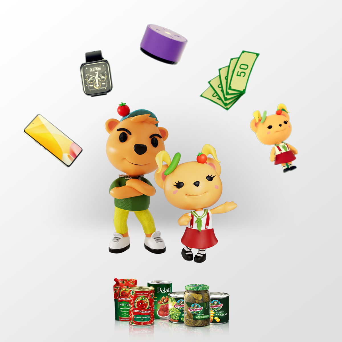 Вы тоже хотите выиграть топовый смартфон, умную колонку, смарт-часы или эксклюзивные игрушки с персонажами? Тогда участвуйте в нашей игре в стиле Тамагочи. Кормите Овощемишек чеками из сети Магнит с продукцией “Помидорка” и “6 Соток” и получайте ПОДАРКИ УЖЕ ЗА ПЕРВЫЙ ЧЕК. Подробности – на сайте овощемишки.рф. 😉
