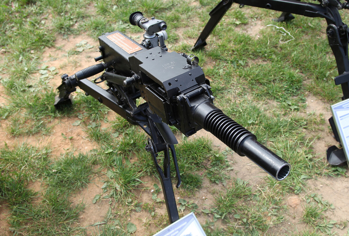 В начале 70-х годов в Советском Союзе был разработан и принят на вооружение З0-мм станковый автоматический гранатомет АГС-17. Он создавался как противопехотное оружие, поражающее живую силу противника, расположенную вне укрытий, в открытых окопах и за естественными складками местности осколочными боеприпасами настильным и навесным огнем. Стрельба из него ведется короткими, длинными очередями и непрерывно. Автоматика действует за счет отдачи массивного свободного затвора. В комплект гранатомета входят: три коробки для выстрелов с девятью лентами по 10 звеньев каждая, чехол для переноски тела гранатомета, две лямки для переноски станка, комплект запасных частей, инструмента и принадлежности и формуляр. Кроме того, на шесть гранатометов предусмотрена одна трубка холодной пристрелки. Нарезной ствол быстросъемный, в ствольной коробке он крепится замыкателем с чекой. Ближе к казенной части ствола выполнено оребрение для увеличения поверхности охлаждения. Затвор прямоугольной формы. В его п