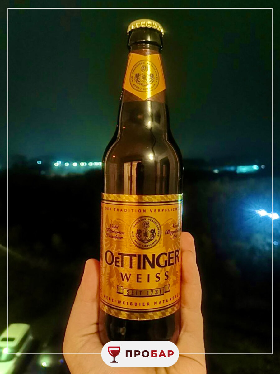 Продолжаем наш локальный пивной обзор с прилавков соседних магазинов. И на очереди у нас лот родом из Германии - "OeTTINGER Weiss". Происхождение Компания «OeTTINGER» начинает свою историю с 1731 года в Германии. Само пиво «OeTTINGER Weiss» – это традиционное баварское пшеничное нефильтрованное пиво верхового брожения. Золотистого цвета, с натуральной дрожжевой мутностью. Отличительная черта - аромат фруктов и гвоздики. Пиво производится по лицензии Oettinger Brauerei GmbH (Германия) на заводе Московской Пивоваренной Компании. О пиве Из названия видим, что оно в стиле Weiss (в переводе с нем. Weizen - ферментированное пшеничное пиво) Горечь - 12 IBU (соответствует лёгкому американскому лагеру) Экстракт начального сусла, или проще говоря плотность пива - 11.5 % (напиток ииеет умеренно насыщенный вкус) Алкоголь - 4.9% Объем - стеклянная бутылка 0.45л Стоимость - 45-60 рублей Наше мнение Положа руку на сердце заранее признаюсь, что отдаю предпочтение светлому нефильтрованному пиву,