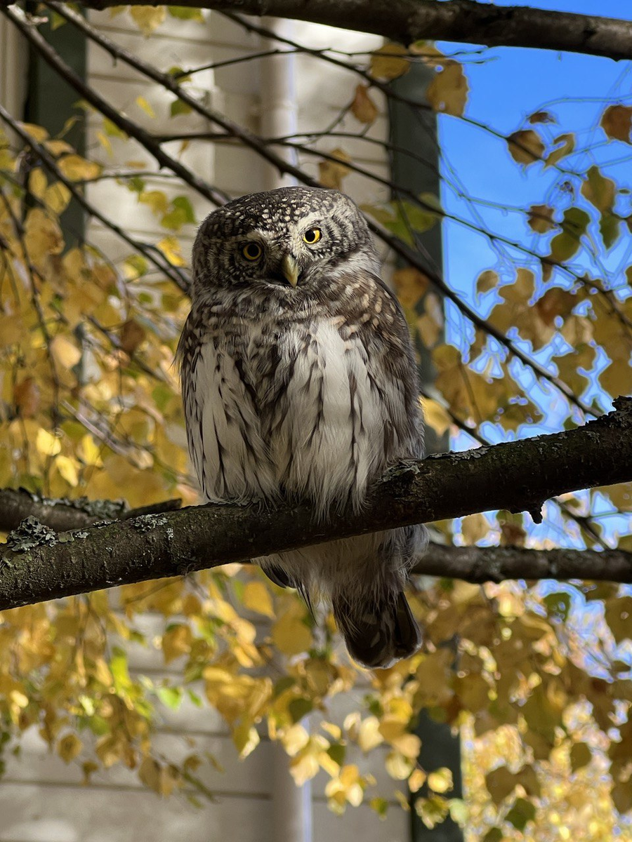 Размером - с двухмесячного котенка. Интереса ко мне - примерно ноль. Прилетело и сидит. Сычи в принципе к людям относятся положительно, потому что мы мышей хорошо разводим - грядки для тех сажаем, морковью приманиваем, компостные кучи у нас опять-таки многообещающие. А если мы хотим сычу пальцем пузико пощекотать - то это тоже пожалуйста. Для этого нас тут и держат. Только у некоторых руки коротки. - Что, допрыгнуть не можешь? - Неа. - Ну, прыгай, прыгай. Мыши с собой есть? Нет? Непорядок... - Я могу тебе кусок мяса в пухе из подушки обвалять. Получится почти что мышь. - Это профанация.